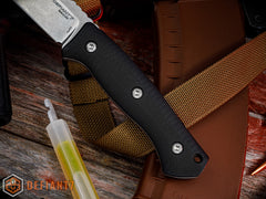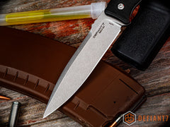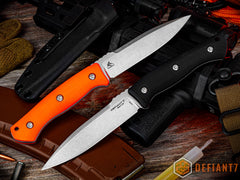 The BK is a modern Dirk style fighter designed by our pal, Allen Elishewitz. Allen drew from decades of martial arts and extensive self defense training to design a fighter geared towards your battle belt, oh shit kit, chest rig or truck companion. It has an overall length around 9.5" and weighs in at around 6oz. Its 4 3/4" S45VN stainless steel blade has a stonewashed finish for super clean look, while the G10 grips provide a secure, comfortable hold.