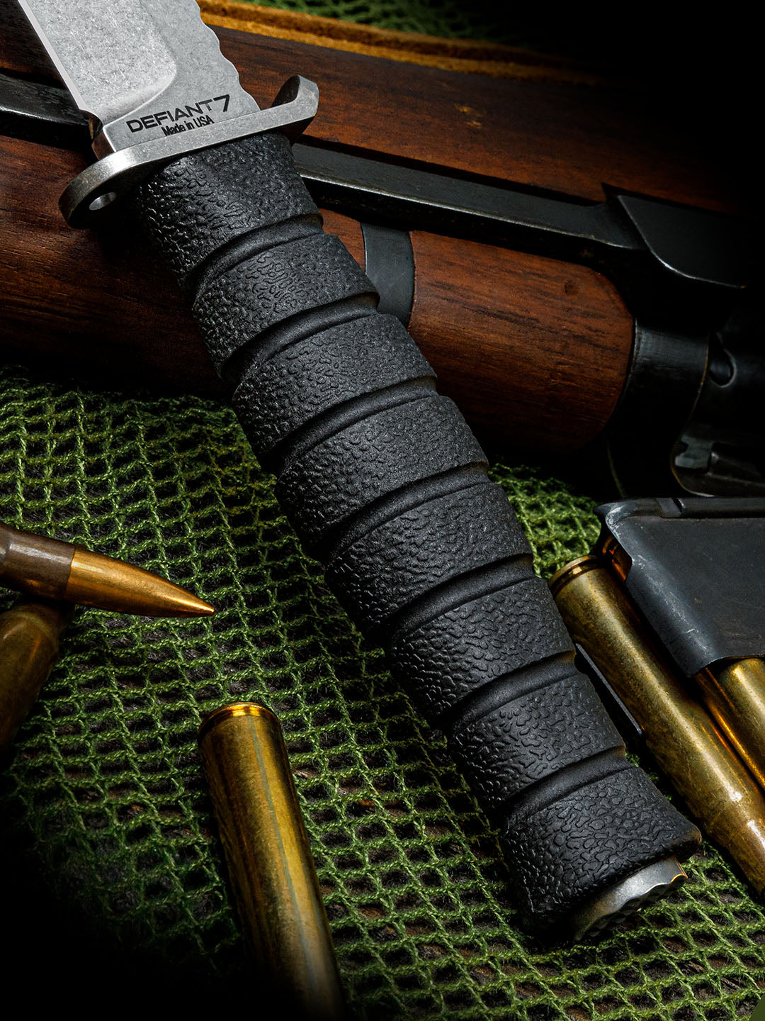 The M320 is our rendition of the venerable M3 fighting knife from WWII. Influenced by time and tradition, we spent four years bringing our vision to life, R&D time combined with modern manufacturing and materials produced a great modern fighter! Our goal was to build the best knife that we could, while paying homage to the great combat knives that saw duty in the trenches, jungles, and beaches of the Second World War.