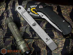 The Ti-Pry Mini is a simple, lightweight, tool that is meant to be carried everywhere. Purposefully scaled down from the original Ty-Pry, the mini can be slipped into a pocket to fill an everyday carry roll without being to large. Made from 3/16" Grade 5 titanium then finished off with a durable stonewashed finish, the Ti-Pry Mini is ready to pry, jimmy, scrape and serve as a back up defensive tool when needed. Save your knife for knife stuff and use the Ti-Pry Mini for the prying. Just the ticket for your ready bag, tool box or oh-shit kit.